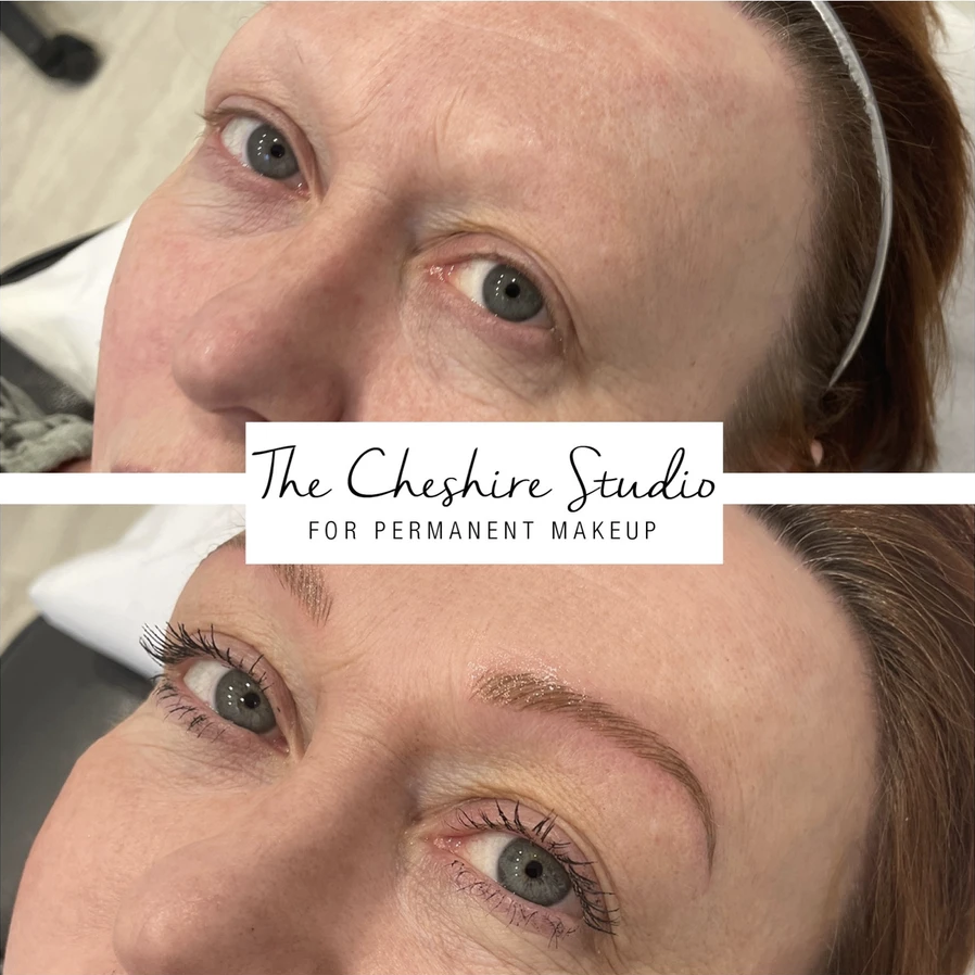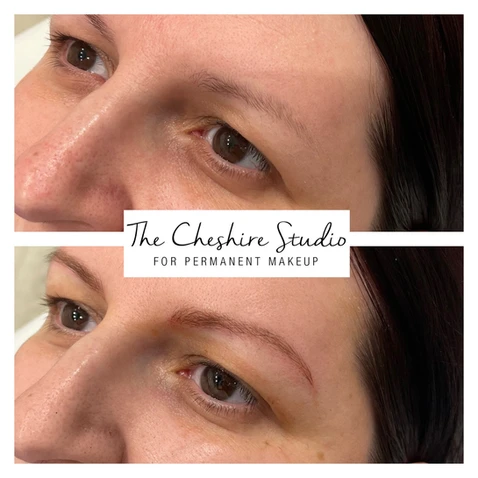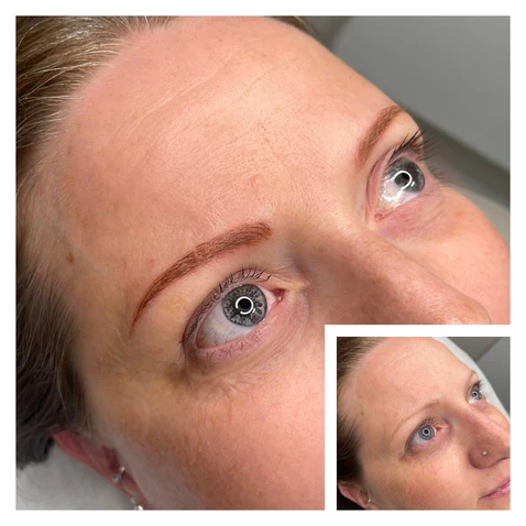 This lady has red brows from old permanent makeup. We went over and corrected the colour to match her hair